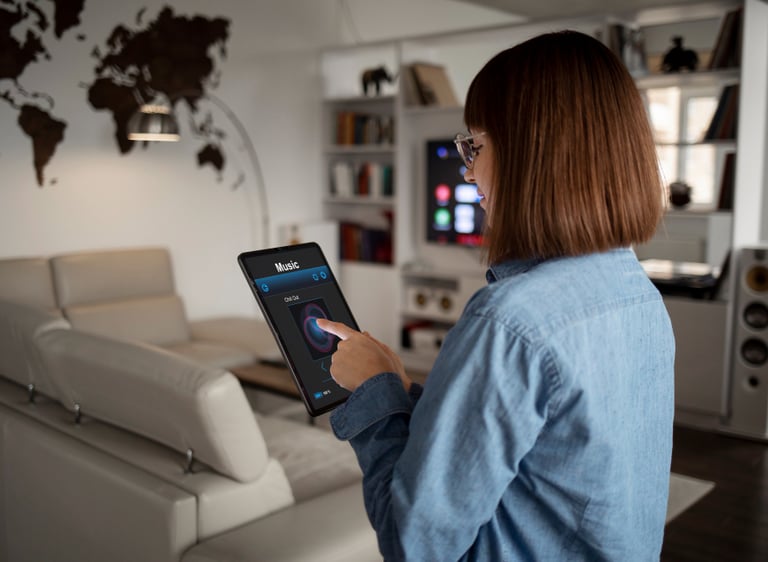 Iluminación, clima, persianas, audio y más, unificados en un control sencillo desde tu smartphone.